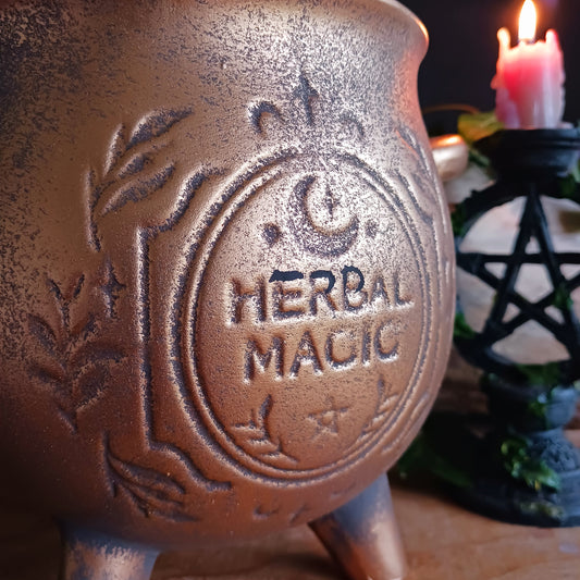 Herbal Magic Terracotta Cauldron Plant Pot – Bronze Effect Witch Planter