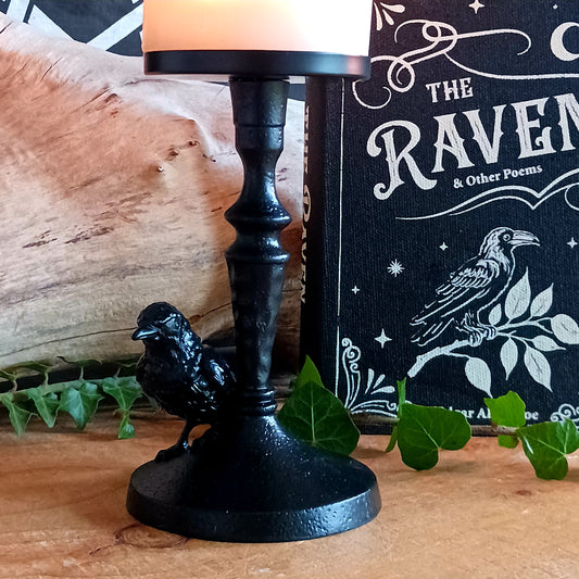 Mystic Raven Pillar Candle Holder – Gothic Raven Altar Decor