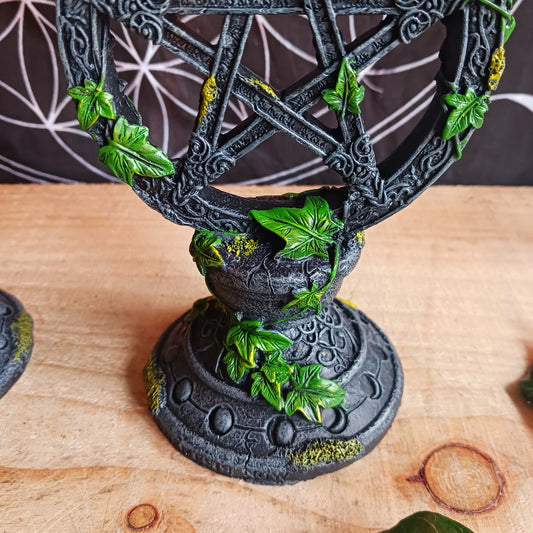 Set of 2 Wiccan Pentagram Candlesticks | Witch Candle Holders