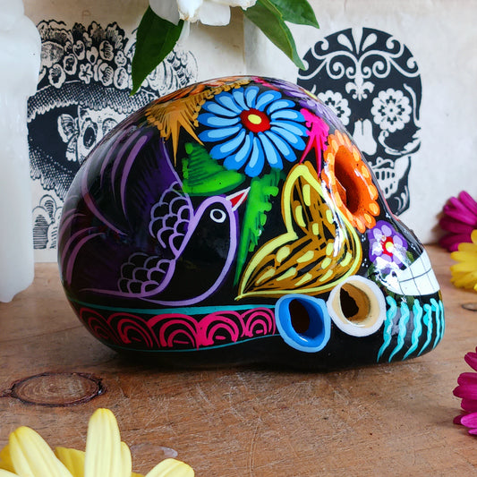 Mexican Painted Ceramic Candy Skull | Black