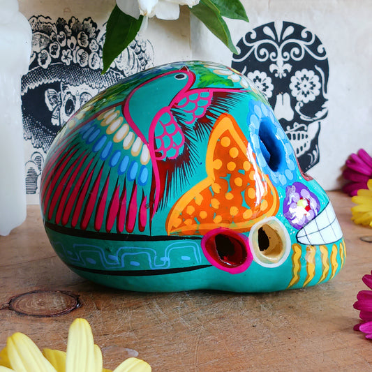 Mexican Painted Ceramic Candy Skull | Turquoise
