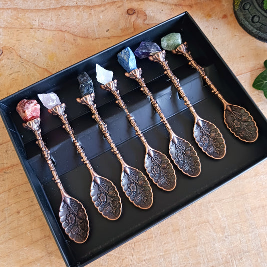 Set of 7 Bronze Gemstone Crystal Witch Spoons