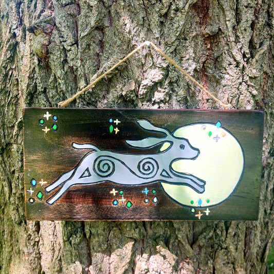 Dark Hare and Moon Wall Plaque