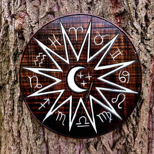 Zodiac Crescent Moon Plaque | Wooden Wall Hanging