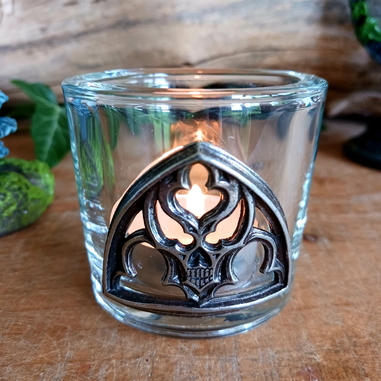 This spooky candle glass is perfect for altars, gothic home décor, or atmospheric rituals.